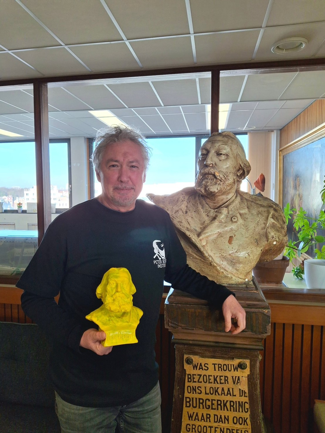 PBIで先日作った「ブノワTシャツ」をお届けしたところ、ブノワの胸像と並んでの写真を送ってくださいました。